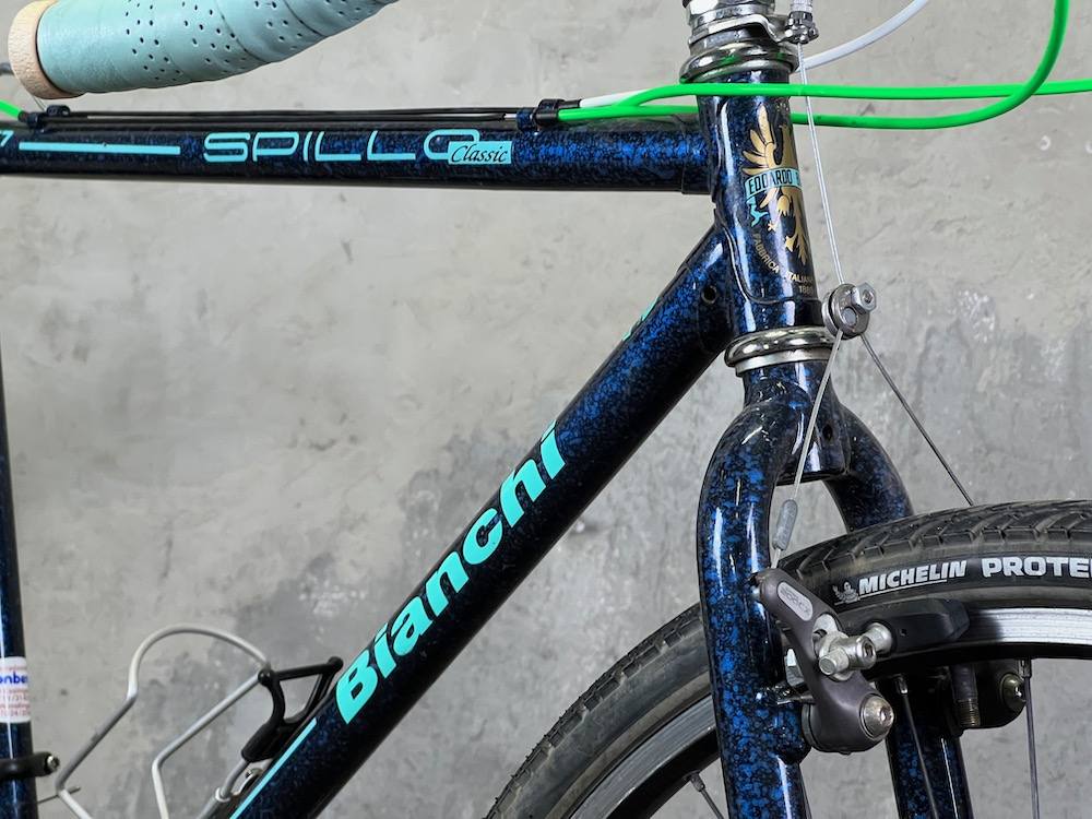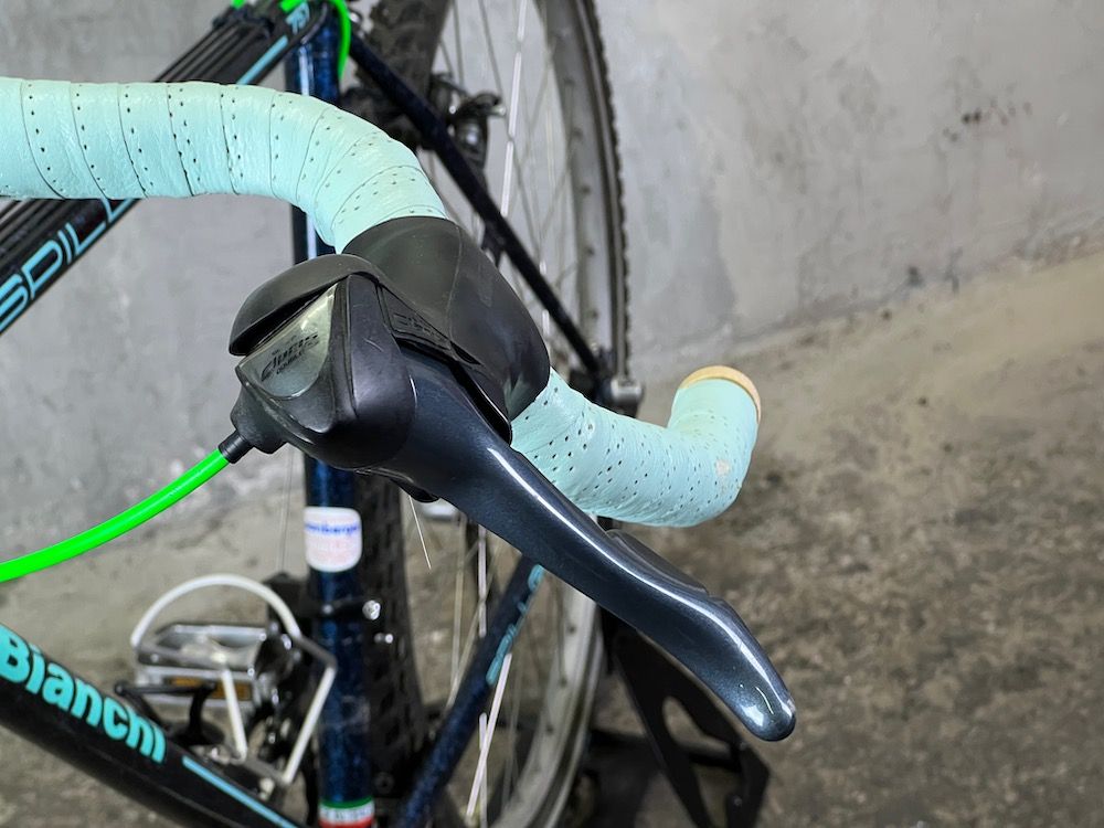 Entdecke unser einzigartiges Bianchi Gravel-Bike mit Vintage-Charme und moderner Leistung. Perfekt für Abenteuer entlang des Mains, Stadtfahrten und Erkundungen im Wald. Dieses liebevoll aufbereitete Rad kombiniert originale Vintage-Elemente mit moderner Funktionalität. Mit der präzisen 2x7 STX Gangschaltung und der Shimano 600 Kurbel bietet es die Performance, die du von aktuellen Gravelbikes gewohnt bist. Die modernen Schalt-Bremshebel (STIs) ermöglichen eine einfache Bedienung. Unser Rad wurde komplett überholt und alle Verschleißteile ausgetauscht, sodass es bereit ist, dein nächstes Abenteuer anzutreten. Für einen authentischen Look haben wir ein Lederlenkerband und einen Ledersattel in der Bianchi typischen Celeste-Farbe hinzugefügt. Diese Details verleihen dem Rad zusätzlichen Charme.
