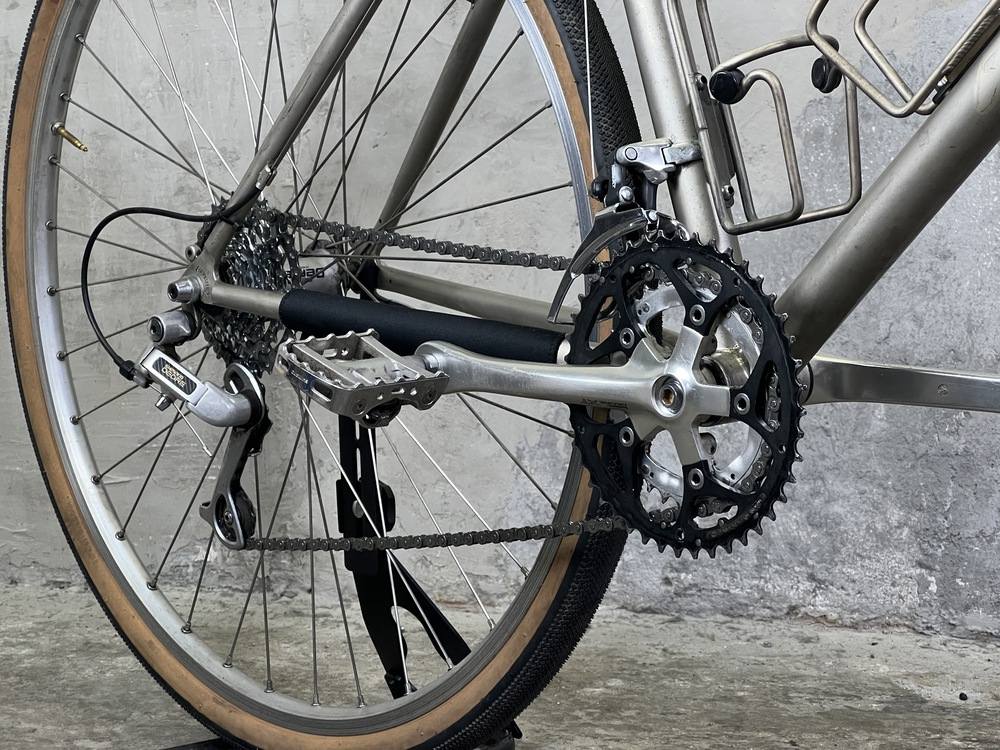 Du suchst ein vielseitiges Gravel Bike, das nicht nur zuverlässig ist, sondern auch einen Hauch von Retro-Charme versprüht? Dann ist der Umbau dieses Stevens Prestige genau das Richtige für dich! Mit seinem optionalen, passenden Ledersattel in sand-beige, den Shimano XT Schaltwerken und der extrem hochwertigen Rahmenverarbeitung ist dieses liebevoll aufbereitete Rad ein echtes Highlight. Der Umbau eines Stevens Prestige ist mit einer präzisen Shimano XT Schaltgruppe ausgestattet, die dir optimale Kontrolle über deine Gänge bietet. Die Kombination aus hochwertigen Komponenten und modernen Schalt-Bremshebeln ermöglicht ein reibungsloses Schalten und eine zuverlässige Performance, wie du es von aktuellen Mountainbikes gewohnt bist.
